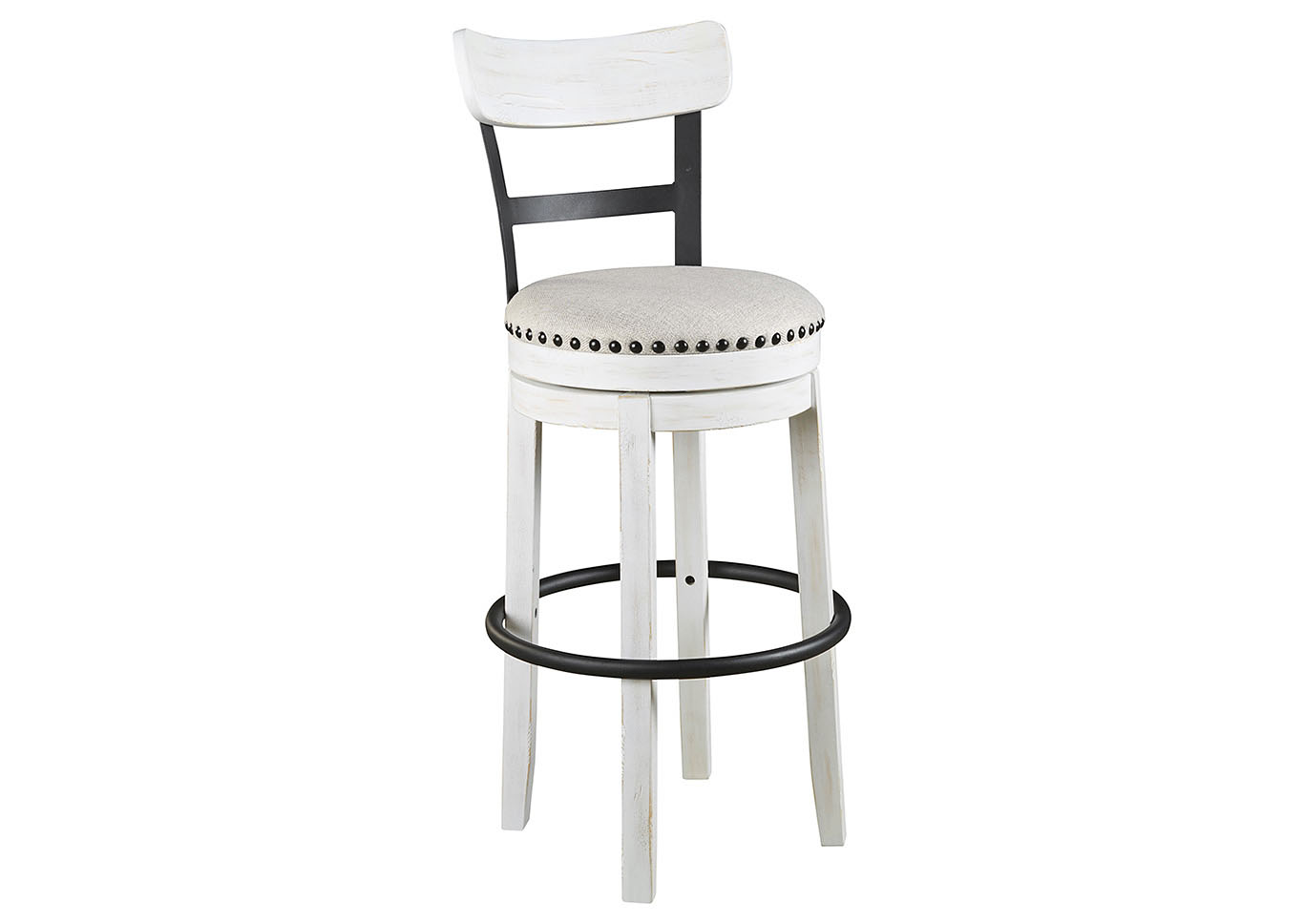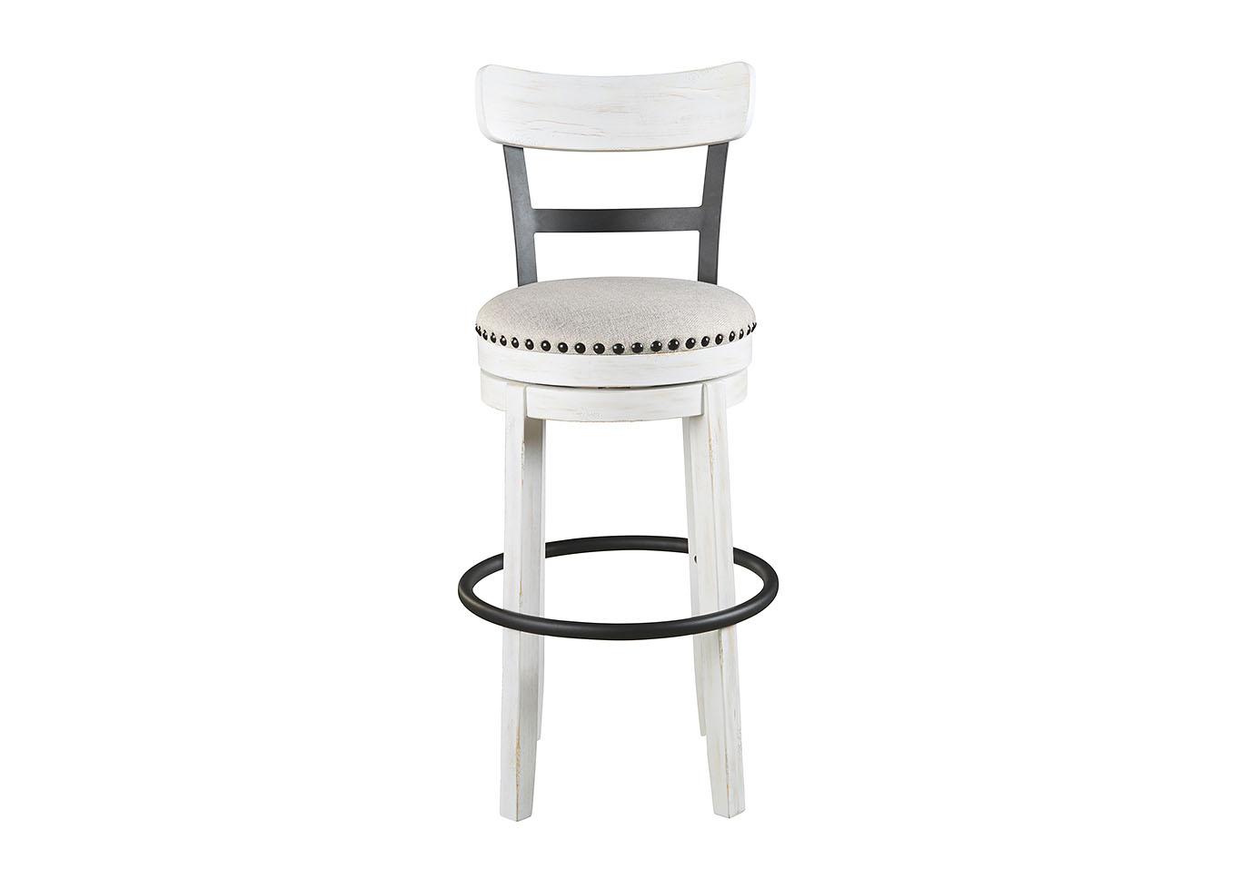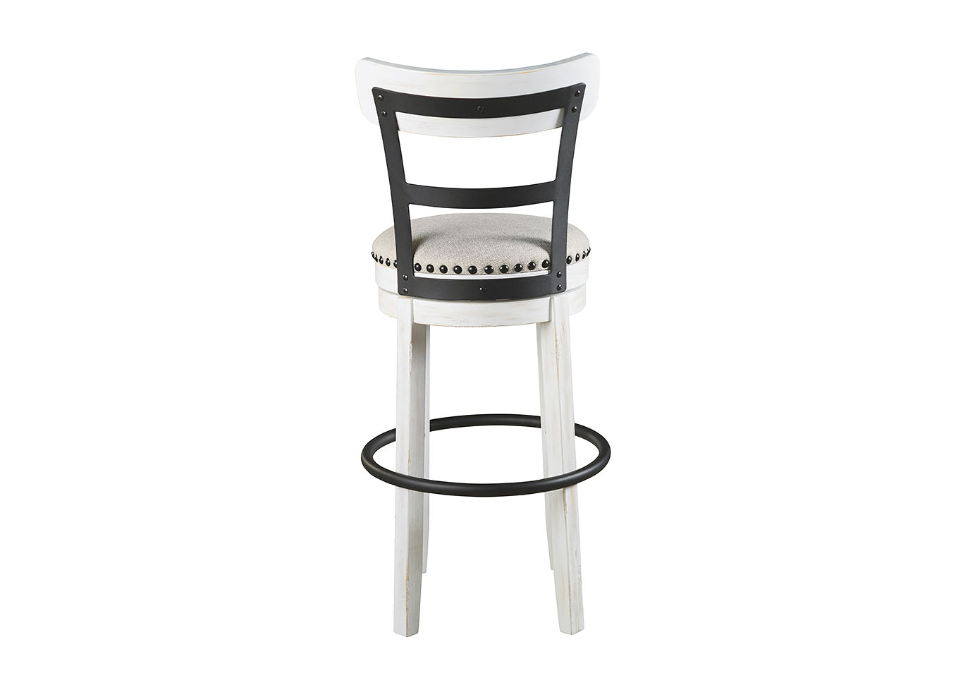 ASHLEY стул высокий VALEBECK( коллекция AMERICAN LIFESTYLE).Стиль: американский Rustic Industrial.Тип: высокий барный стул с мягким сиденьем и плавным вращательным механизмом( 360 градусов) .Цвет: бежевый( лён),белый/коричневый,чёрный.Обивка: сложнофактурная ткань 100% полиэстер,категория высшая,одобрена по высоким американским стандартам AHFA ( износостойкость,долговечность).Отделка: кант из металлических мебельных гвоздей.Размеры,мм: ш.495/г.495/в.1092.