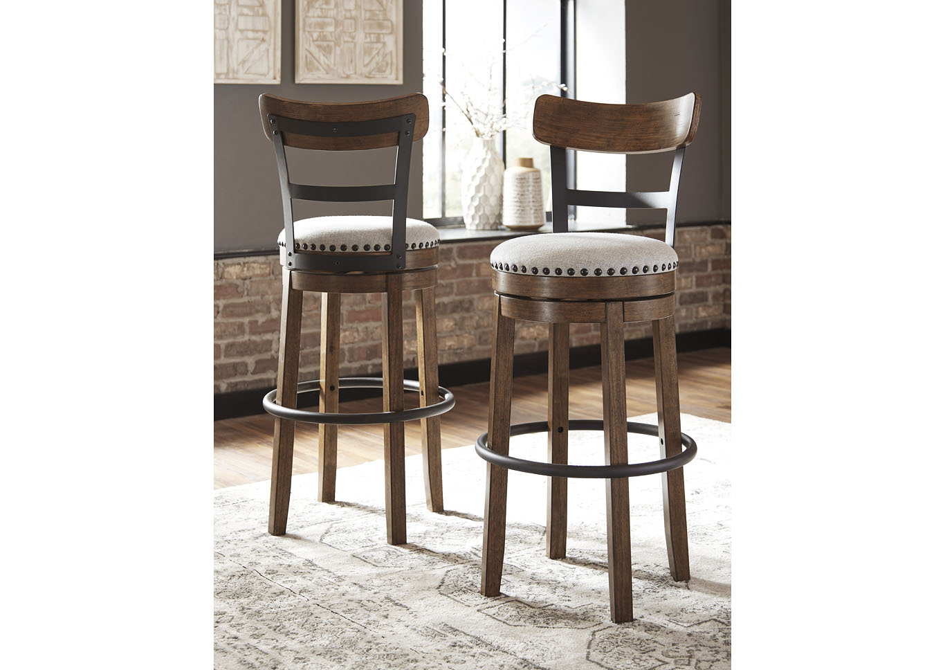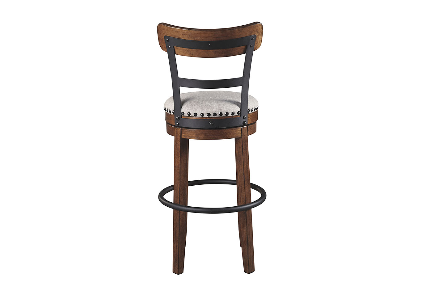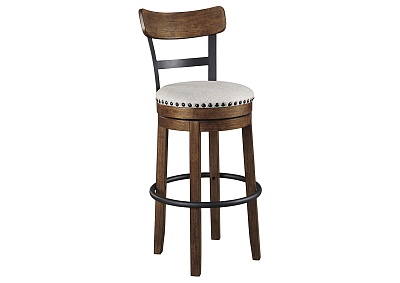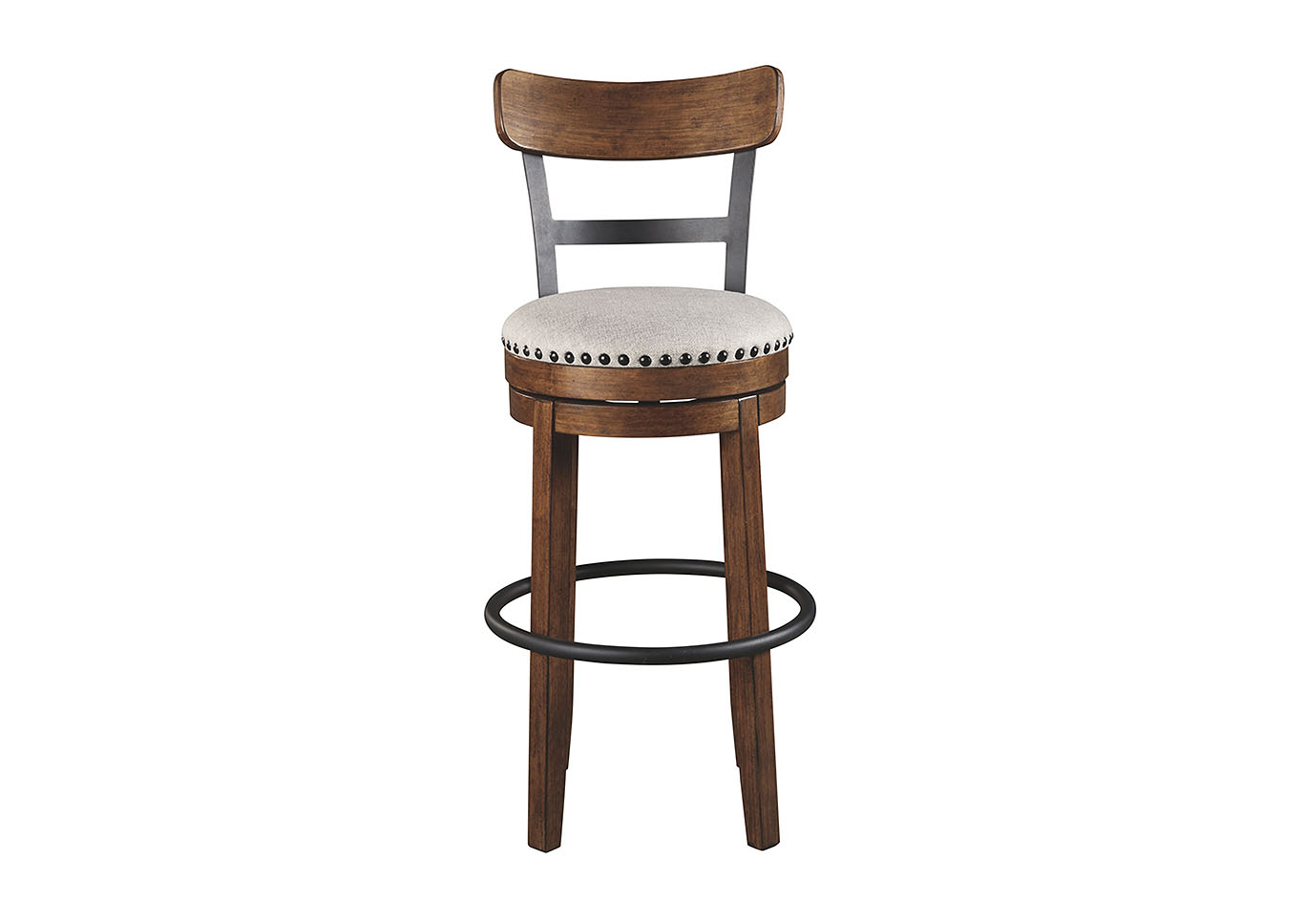 ASHLEY стул высокий VALEBECK( коллекция AMERICAN LIFESTYLE).Стиль: американский Rustic Industrial.Тип: высокий барный стул с мягким сиденьем и плавным вращательным механизмом( 360 градусов) .Цвет: бежевый( лён),белый/коричневый,чёрный.Обивка: сложнофактурная ткань 100% полиэстер,категория высшая,одобрена по высоким американским стандартам AHFA ( износостойкость,долговечность).Отделка: кант из металлических мебельных гвоздей.Размеры,мм: ш.495/г.495/в.1092.