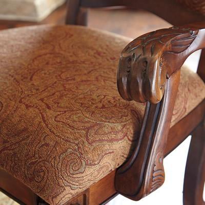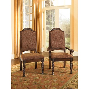 ASHLEY кресло обеденное NORTH SHORE(коллекция AMERICAN LIFESTYLE).Стиль:американский Traditional.Тип:кресло обеденное с подлокотниками, мягкими сиденьем и спинкой.Цвет:тёмно-коричневый.Обивка:сложнофактурная ткань с принтом пейсли(индийский огурец),в жемчужных тонах,хлопок 70%;вискоза 30%,категория высшая,одобрена по высоким американским стандартам AHFA(износостойкость,долговечность).Отделка:кедровый шпон,акценты и аппликации из литой смолы.Размеры,мм:ш.692/г.689/в.1200.