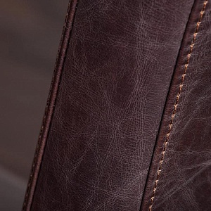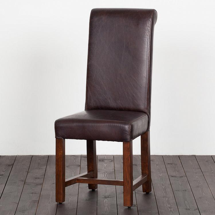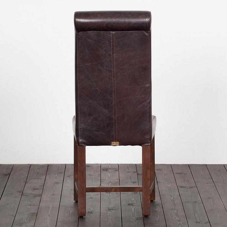 HALO EST.1976 стул ROLLBACK DINING CHAIR ( дизайн Timothy Oulton).Стиль: British classic.Тип: мягкий обеденный стул с высокой спинкой и тёмными ножками.Цвет: тёмно- коричневый.Обивка:100% кожа Biker Dark Brown - пропитанная воском мягкая и прочная состаренная анилиновая кожа буйвола уникальной ручной выделки тёмно- коричневого цвета.Отделка: лиственница;каучуковое дерево.Размеры,мм: ш.490/г.630/в.1110.