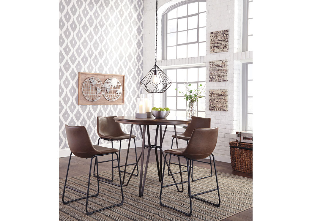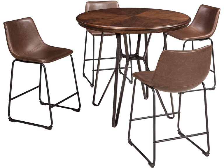 ASHLEY стул CENTIAR ( коллекция AMERICAN LIFESTYLE).Стиль: американский Casual.Тип: стул барный, с контурным ковшеобразным мягким сиденьем и трубчатым металлическим основанием.Цвет: коричневый.Обивка: экокожа,категория высшая,одобрена по высоким американским стандартам качества AHFA( износостойкость,долговечность).Отделка: искусственно состаренная.Размеры,мм: ш.500/г.540/в.880.