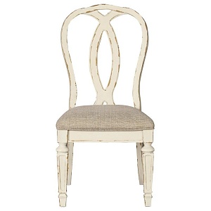 ASHLEY стул REALYN(коллекция AMERICAN LIFESTYLE).Стиль: американский Vintage Casual.Тип: обеденный стул,с мягким сиденьем.Цвет: слоновая кость(белый),бежевый.Обивка: сложнофактурная ткань 100% полиэстер,категория высшая,одобрена по высоким американским стандартам AHFA(износостойкость,долговечность).Отделка: патинированная двухцветная, искусственно состаренная, спинка изогнутая в виде ленты.Размеры,мм:ш.495/г.610/в.1026.