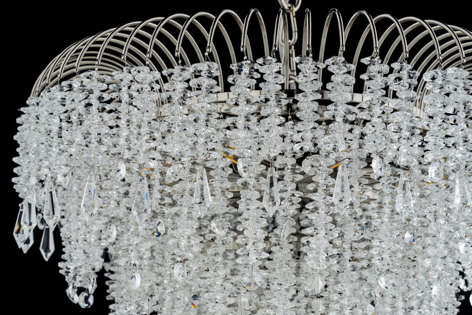 ARTI LAMPADARI люстра FERLA.Стиль: Modern.Тип: люстра восьмиламповая ярусная с хрустальными подвесками.Цвет: никель/прозрачный.Отделка:-.Размеры,мм: ш.460/г.460/в.450.