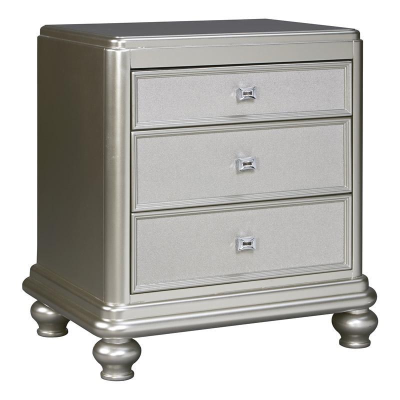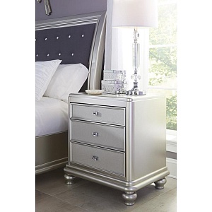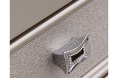ASHLEY тумба CORALAYNE(коллекция AMERICAN LIFESTYLE).Стиль:американский Traditional.Тип:прикроватная тумба,три ящика.Цвет:серебро.Отделка:металлический блеск тональных каналов рамки,шагреневая текстура фасадов ящиков,хромированная фурнитура, украшенная искусственным хрусталём.Размеры,мм:ш.660/г.490/в.746.