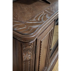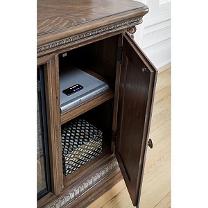 ASHLEY тв- стенд CHARMOND (коллекция AMERICAN LIFESTYLE).Стиль: американский Grand Elegance.Тип: тв- стенд,два шкафа в каждом регулируемая полка,центральное пространство с двумя регулируемыми/съёмными полками и задним вырезом для проводов,и вентиляции,совместим с электрическим камином W100-121.Цвет: коричневый с белыми бликами.Отделка: патинированный шпон дуба,столешница украшена контрастной вихревой окантовкой из шпона ясеня,акценты из литой смолы,бронзовая антикварная фурнитура.Размеры,мм:ш.1753/г.493/в.864.