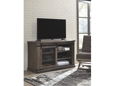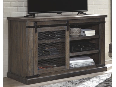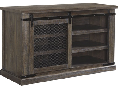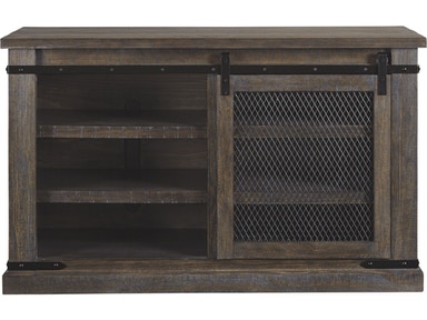 ASHLEY тв- стенд DANELL RIDGE (коллекция AMERICAN LIFESTYLE).Стиль: американский Casual.Тип: тв- стенд,с четырьмя полками,раздвижной дверью,фасадом из проволочной сетки,задними вырезами для проводов и вентиляции.Цвет: коричневый.Отделка: эффект состаренной сосны,с лёгкой текстурой,обработанной щёткой;металлическая фурнитура.Размеры,мм:ш.1270/г.505/в.759.
