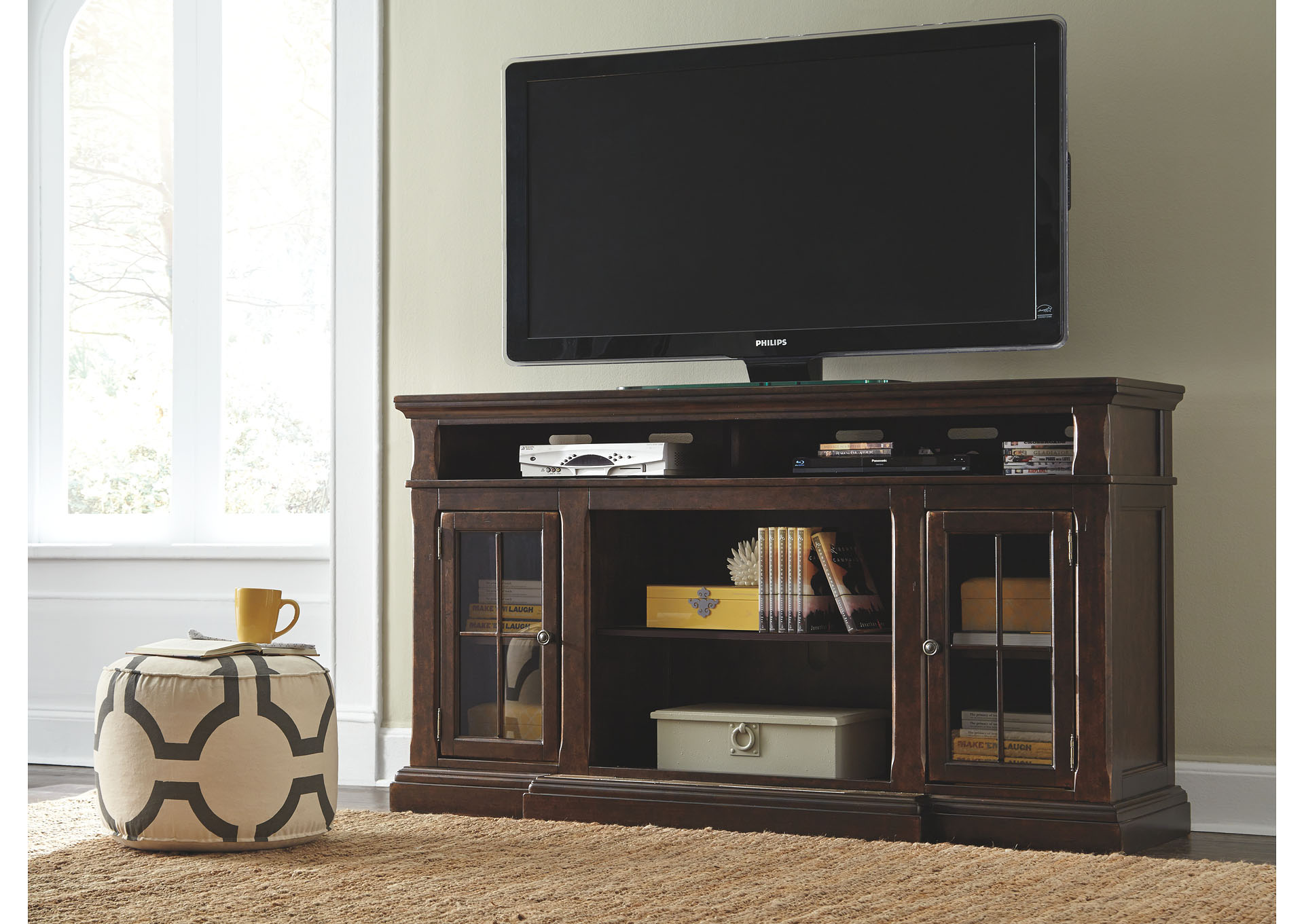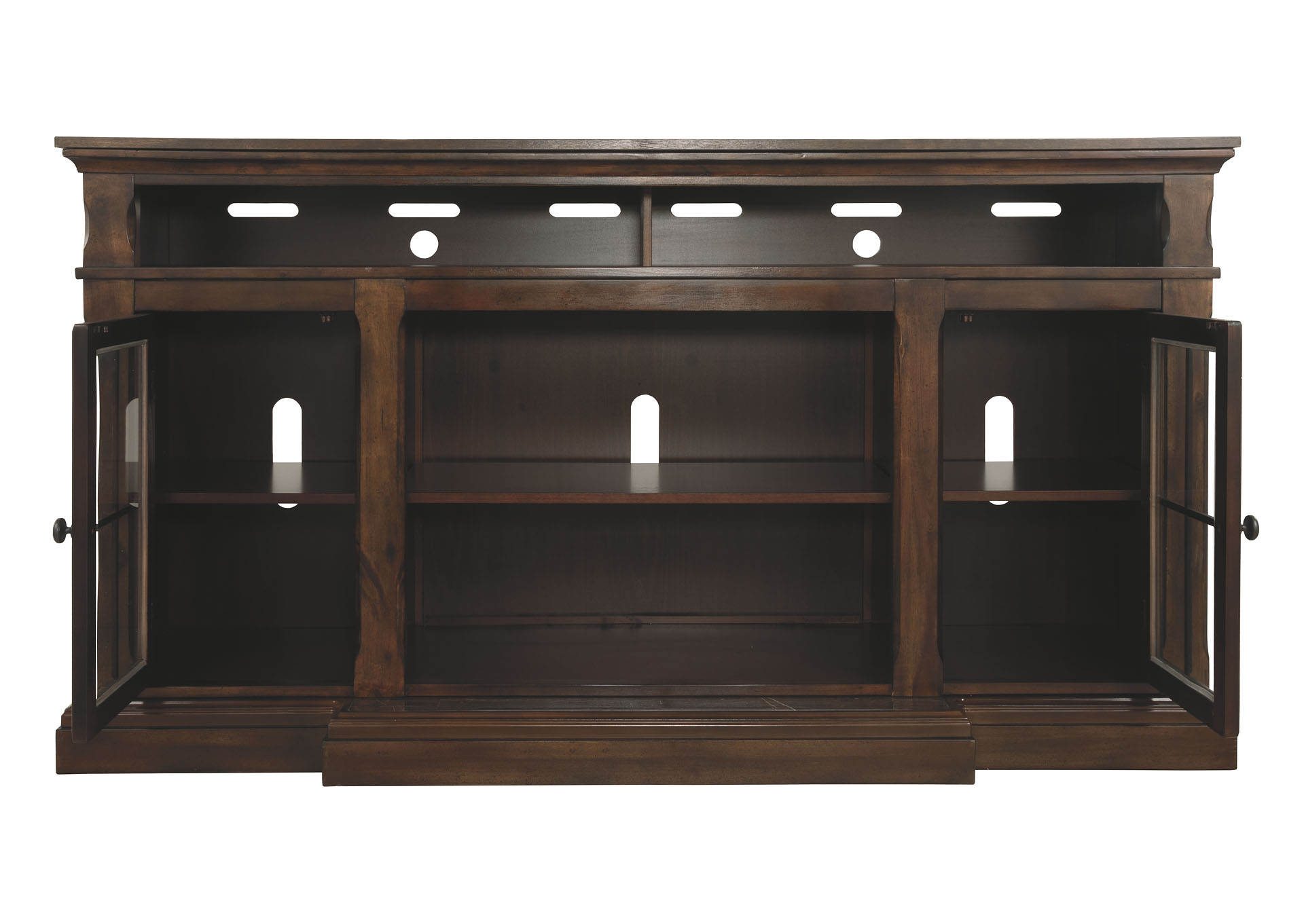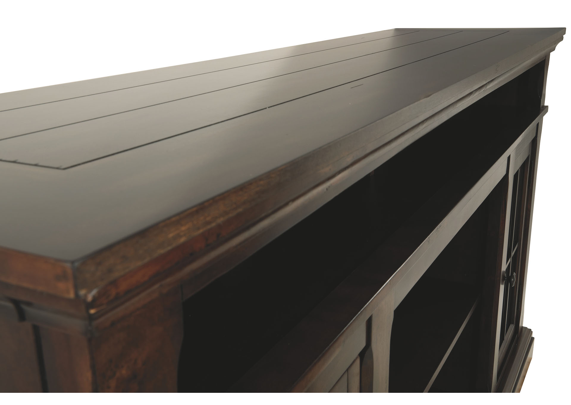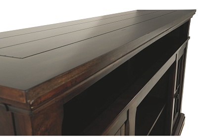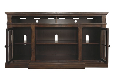 ASHLEY тв- стенд RODDINTON (коллекция AMERICAN LIFESTYLE).Стиль: американский Casual.Тип: тв- стенд,с четырьмя полками,два шкафа со стеклянными дверцами, в каждом по одной регулируемой полке,центральное пространство с одной регулируемой/съёмной полкой и задними вырезами для проводов, и вентиляции.Цвет: коричневый.Отделка: передний край со вставками из натурального мрамора, металлическая фурнитура.Размеры,мм:ш.1829/г.559/в.1016.