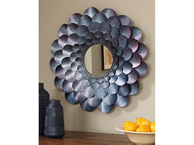ASHLEY зеркало DEUNORO (коллекция AMERICAN LIFESTYLE).Стиль: американский Modern.Тип: круглое акцентное зеркало.Цвет: синий.Отделка: цветочное металлическое обрамление со слоями светящихся лепестков .Размеры.мм:ш.787/г.76/в.787.