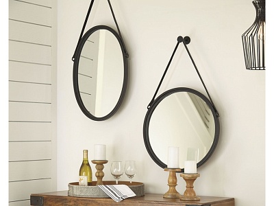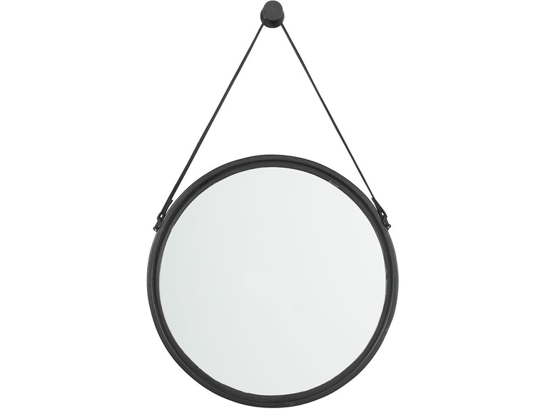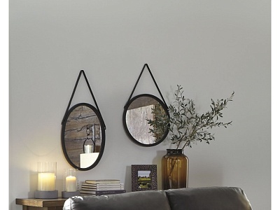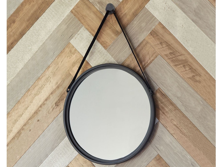ASHLEY зеркало DUSAN (коллекция AMERICAN LIFESTYLE).Стиль: американский Casual.Тип: круглое акцентное зеркало в металлическом обрамлении с кожанным шнурком и подвесной стойкой.Цвет: чёрный.Размеры.мм:ш.508/г.45/в.508.