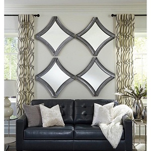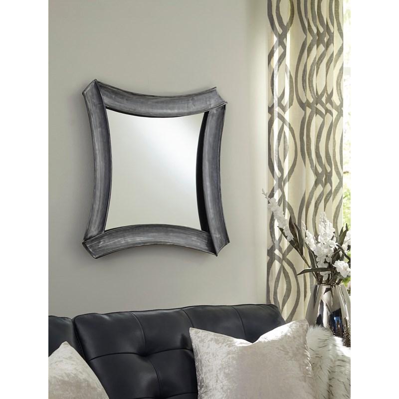 ASHLEY зеркало POSIE (коллекция AMERICAN WALL DECOR).Стиль: американский Modern.Тип: акцентное зеркало с металлической рамой в виде ленты.Цвет: серебро.Отделка: серебристое покрытие под старину.Размеры,мм:ш.737/г.41/в.737.